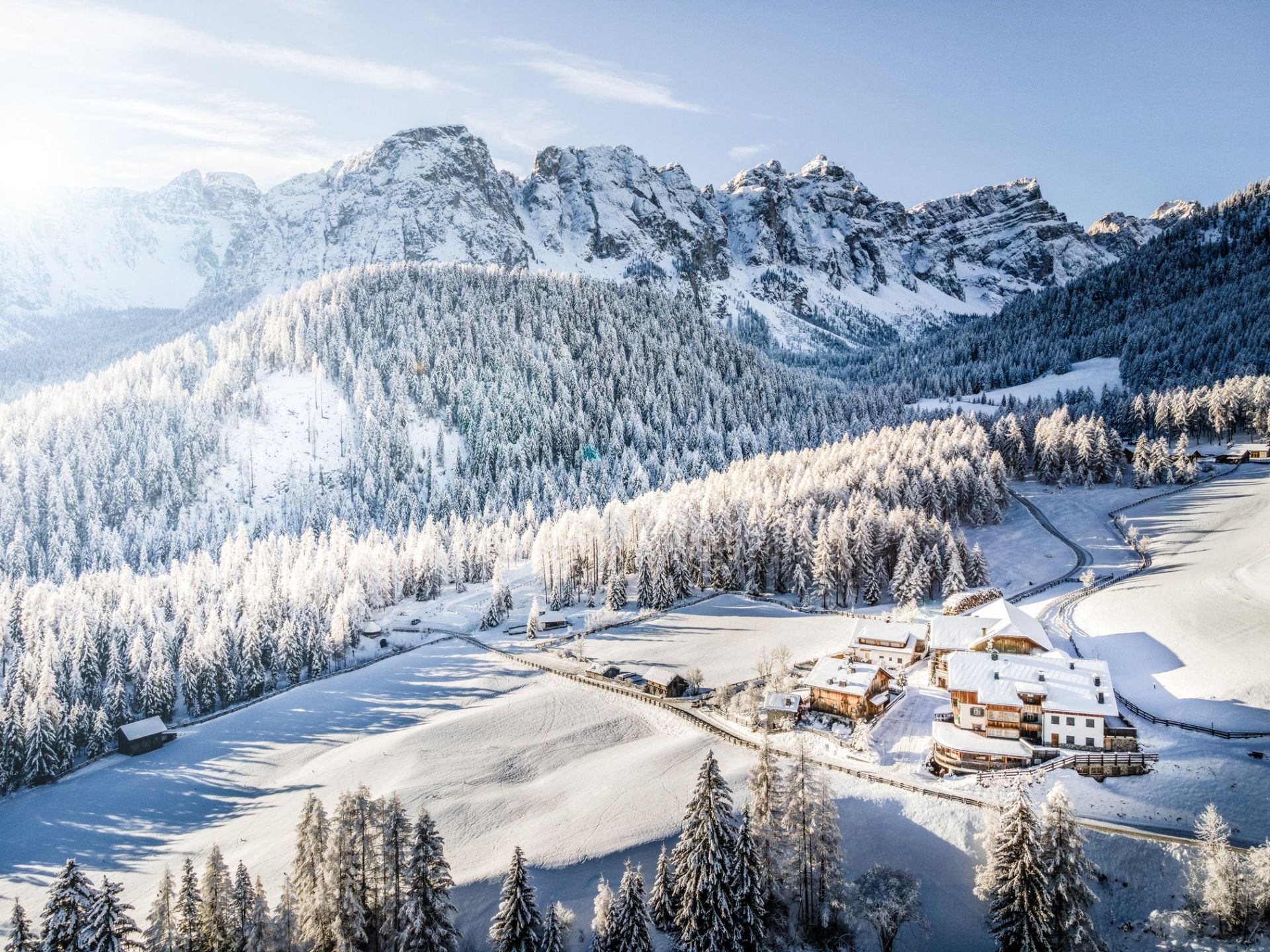 Un rigagnolo di acqua limpidissima si fa strada tagliando di netto una magica coltre bianca. Le ciaspole affondano nella neve soffice. Tutt'attorno, il silenzio e gli odori del bosco parlano una lingua che non ha bisogno di essere tradotta. Quella della montagna più autentica. La dimensione che troverete solo in luoghi intatti, come quelli che circondano l'Agriturismo Tlisöra. Il paradiso dei tour scialpinistici. Dove la macchina e le file agli impianti di risalita sono banditi. Meraviglia pura!