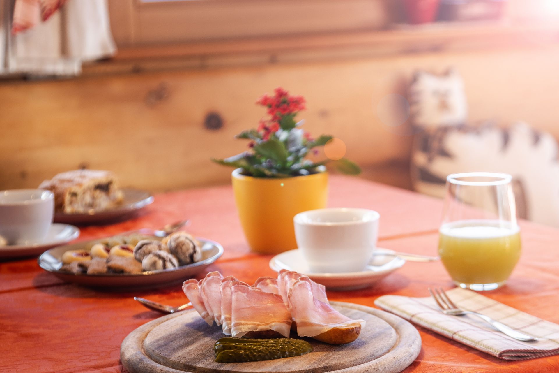 La materia prima è ciò che contraddistingue la nostra cucina. Fresca, coltivata a chilometro zero. Mangiare all'Agriturismo Tlisöra è un'esperienza unica. Come unici sono i suoi prodotti. Che vengano dall'orto o dall'allevamento. Sarà un vero piacere, un percorso dei sensi che non potrete dimenticare. Pensatevi mentre gustate un uovo fresco a colazione o addentate un saporito panino con lo speck di nostra produzione. Le erbe del maso daranno al vostro piatto quel sapore tipico delle pietanze ladine. Nel nostro agriturismo le Dolomiti le trovate a tavola!